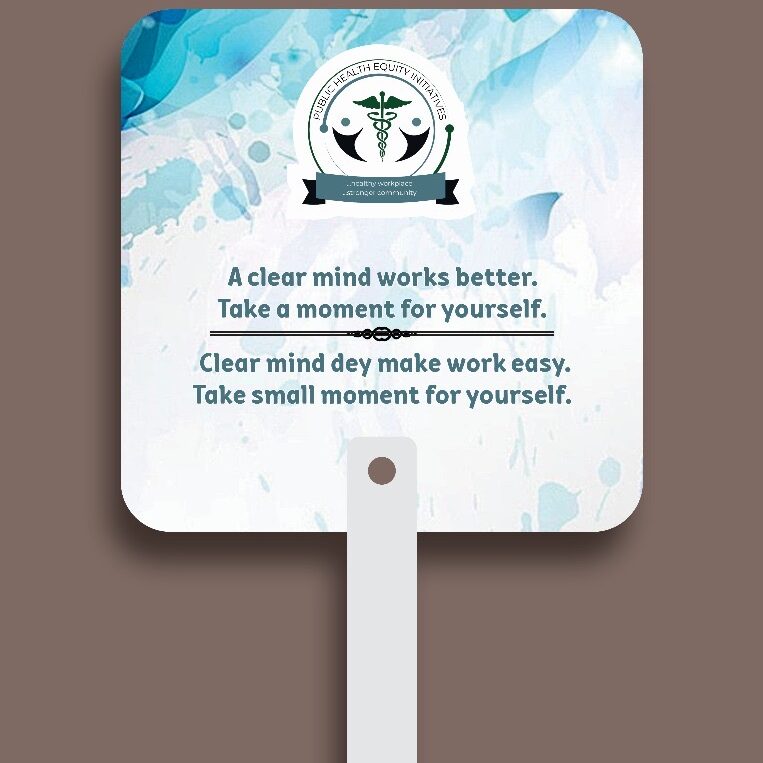 To reinforce learning beyond the outreach day, participants received branded aprons, hand fans, and stickers printed with mental health reminders, tools designed for daily use in their work environment.