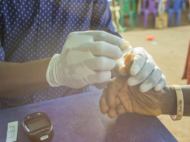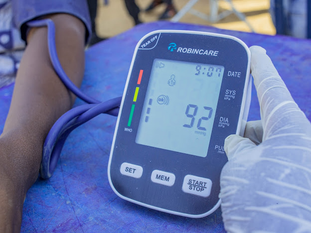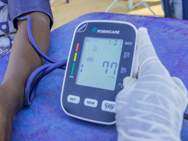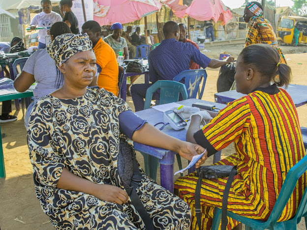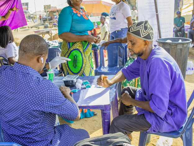 - Traders participating in blood pressure and blood sugar screenings at Piwoyi Market.